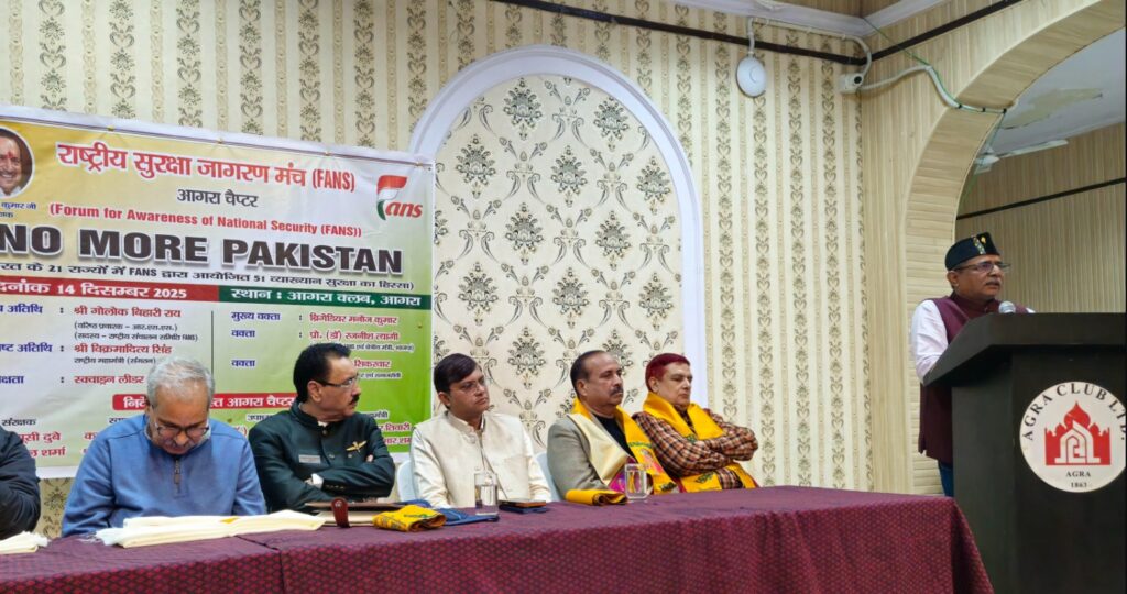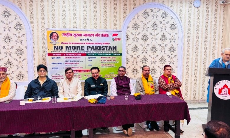 आगरा। राष्ट्रीय सुरक्षा जागरण मंच, आगरा चैप्टर द्वारा एक राष्ट्रीय संगोष्ठी, आगरा क्लब आगरा पर आयोजित की गई। संगोष्ठी का विषय था “नो मोर पाकिस्तान”।
